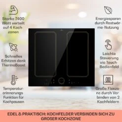 Virtuosa EcoAdapt Induktionskochfeld 4 Zonen 7200W Glas Schwarz
