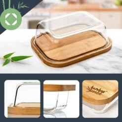 Glaswerk Hermatige Aufschnittbox Mit Glasdeckel 2er Set Borosilikatglas Bambus Schneidebret
