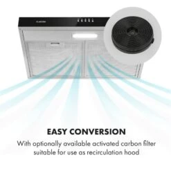 Mit nur 10 cm Höhe und 60 cm Breite passt die Klarstein Contempo Dunstabzugshaube einerseits ideal an die Wand über Kochflächen in üblicher Größe und ist anderseits perfekt geeignet, um sich platzsparend unter eine Küchenhänge zu schmiegen.