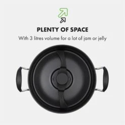 Nach dem Kochen ist der Topf des Marmeladenkochers schnell gesäubert, zumal er sich in der Spülmaschine reinigen lässt. Mit drei Litern Volumen bietet er viel Platz für jede Menge Marmeladen und Gelees.