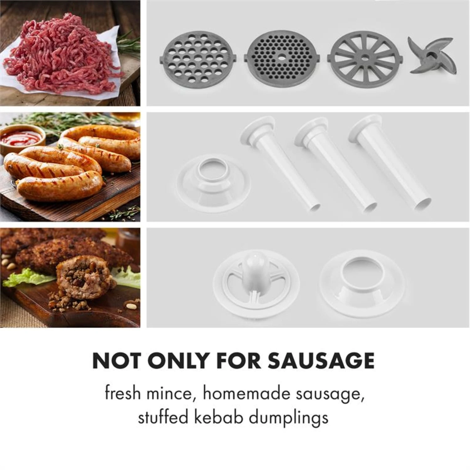 • Wurstfüllset mit drei Füllrohren für feine, mittlere oder grobe Wurstmasse