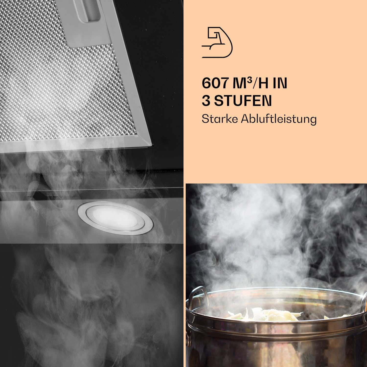Zola 60 Dunstabzugshaube Kopffrei 60cm 190W 607m³/h LED Edelstahl/Glas – Bild 6